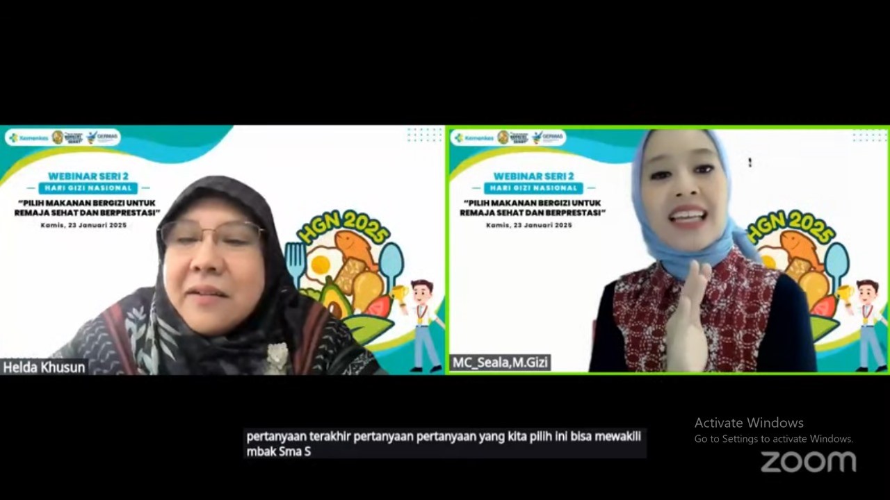 Melalui kesempatan webinar seri 2 ini, Helda Khusun selaku pemateri yang ditunjuk dari Kementerian Kesehatan Republik Indonesia menyampaikan beberapa pesan gizi seimbang khusu untuk remaja diantaranya : biasakan makan 3 kali sehari (pagi, siang, malam) dan makan selingan sehat bersama keluarga, biasakan membawa bekal makanan dan air putih dari rumah, batasi makanan konsumsi siap saji, jajanan dan makanan selingan yang manis, asin dan berlemak, biasakan menyikat gigi sekurang-kurangnya 2 (dua) kali setelah makan pagi dan sebelum tidur, hindari merokok, untuk remaja puteri minum tablet tambah darah (TTD) 1 tablet 1 kali minggu. Adapun anjuran lain yang harus kita pegang terkait kesehatan diri yaitu segala sesuatu dalam jumlah sedang (everything in moderation) sesuai diperintahkan dalam surah al a’raf ayat 31.
