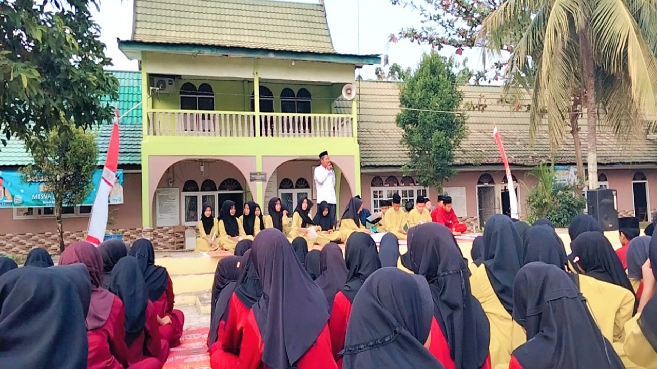 Kepala MTsN 6 Batang Hari, Suyatno, memberikan apresiasi tinggi atas keberanian Hayyan Faiz yang telah tampil menyampaikan kultum.