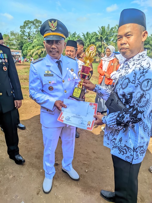Penyerahan piala, piagam, dan uang pembinaan dilakukan langsung oleh Camat Muara Tembesi, Bapak Edi Purwanto beserta jajaran pejabat kecamatan, usai upacara peringatan HUT RI di Lapangan SDN 25/I Kampung Baru.