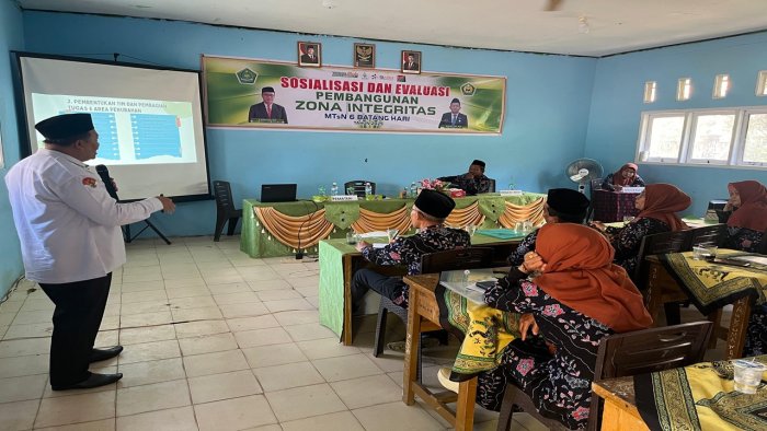 Senin (22/09/2025), MTsN 6 Batang Hari menggelar kegiatan Sosialisasi Pembangunan Zona Integritas (ZI). Kegiatan ini diikuti 40 peserta yang terdiri dari guru dan pegawai MTsN 6 Batang Hari serta guru dan pegawai MIS Nurul Jadid Desa Rambutan Masam.