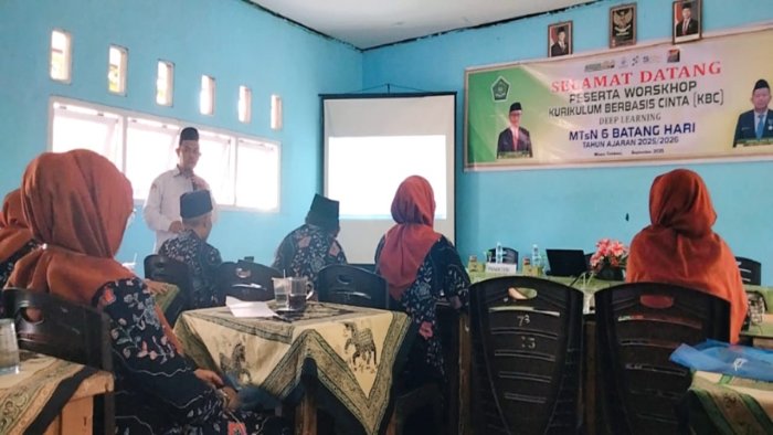 Senin (22/09/2025), MTsN 6 Batang Hari menyelenggarakan Workshop Kurikulum Berbasis Cinta (KBC) 2025. Kegiatan ini diikuti oleh seluruh guru dan pegawai MTsN 6 Batang Hari serta perwakilan guru dan pegawai dari MIS Nurul Jadid.