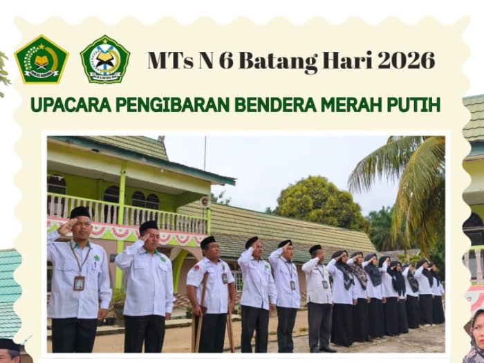 Senin, 26 Januari 2026. MTsNegeri 6 Batang Hari melaksanakan upacara pengibaran Bendera Merah Putih yang diikuti oleh seluruh siswa, guru, dan tenaga kependidikan. Upacara berlangsung dengan khidmat di halaman madrasah.