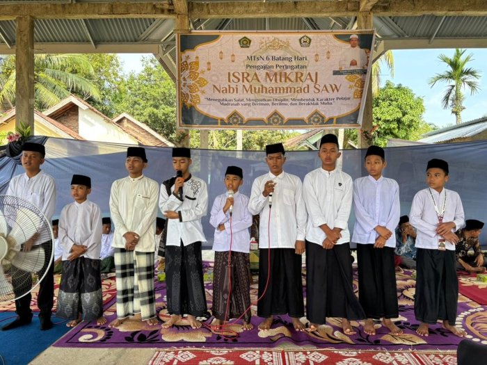 Rabu, 28 Desember 2026. Peringatan Isra Mikraj Nabi Muhammad SAW 1447 H di MTsNegeri 6 Batang Hari semakin semarak dengan penampilan para siswa yang menjadi pengisi acara. Sejak awal hingga akhir kegiatan, para siswa tampil percaya diri dan mampu menghadirkan suasana religius yang khidmat sekaligus mengesankan.